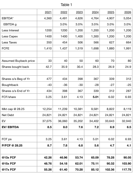 It is rare to find a very stable/non cyclical business trading at just 8x 2022e EV/EBITDA and 8x free cash flow to equity. What are they doing with ALL the free cash flow? Buying back stock.