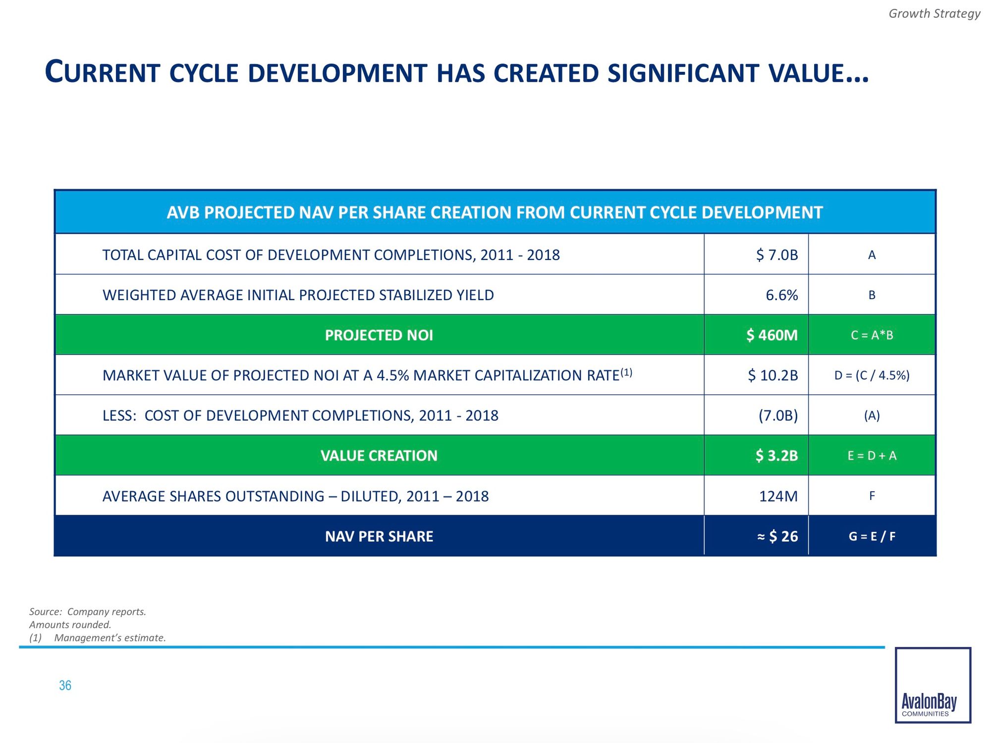 This is from a 2019 investor presentation so Current Cycle could be replaced with Past Cycle (as you can see from the share prices the cycle ended). However, AVB has served shareholders well by investing capital at high rates of return (6.6% - take with a grain of salt but still probably 6.2-6.3% with strong NOI growth thereafter).