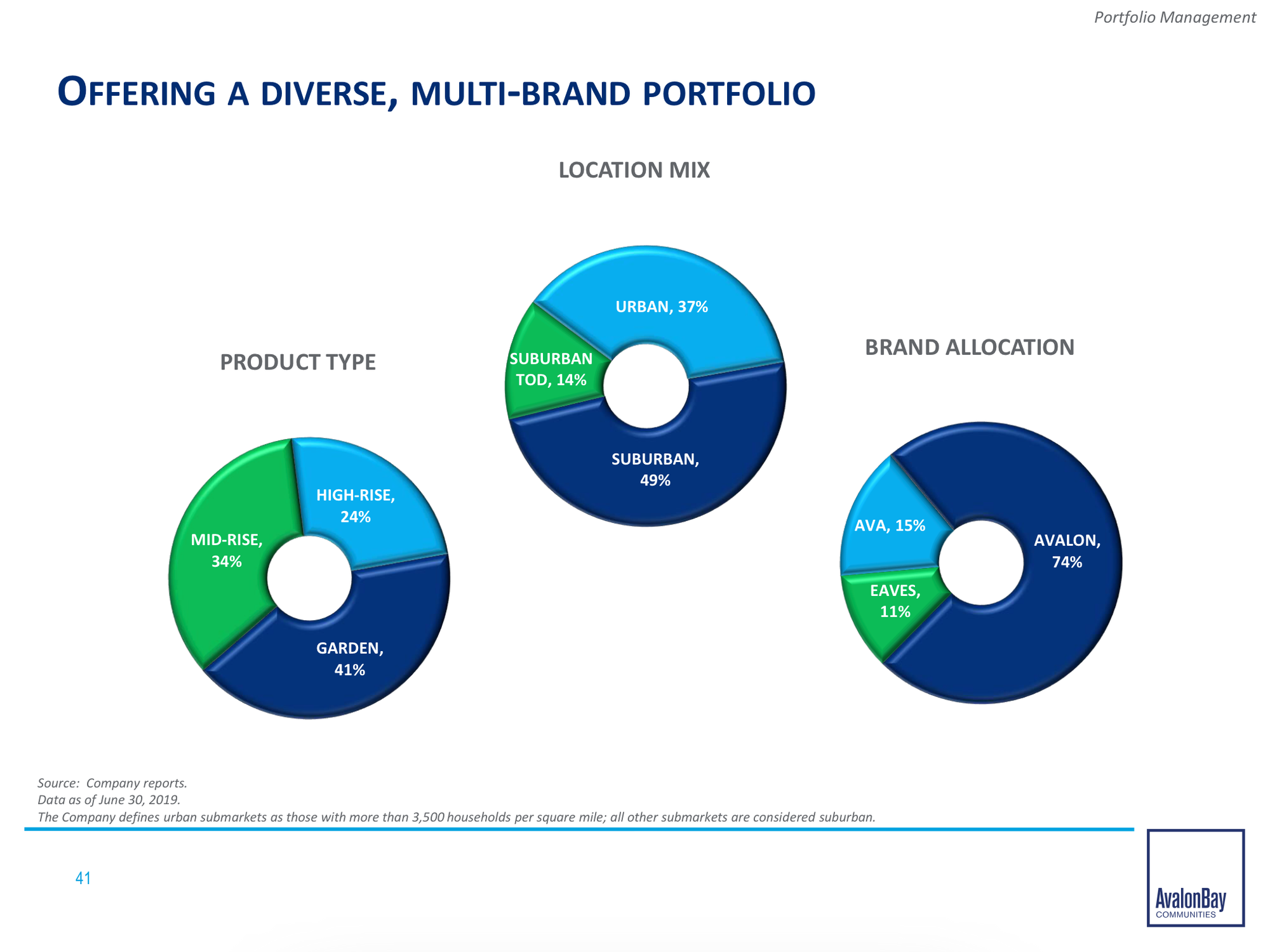 Everyone is freaking about about the death of cities and flight to the burbs. If you've been reading, you know I think that this line of thinking is...less than smart. But this myopia has certainly had a negative impact on AVB's stock price. However, AVB is actually pretty well positioned from the standpoint of having lots of suburban/low rise exposure (see product & location pie charts below).