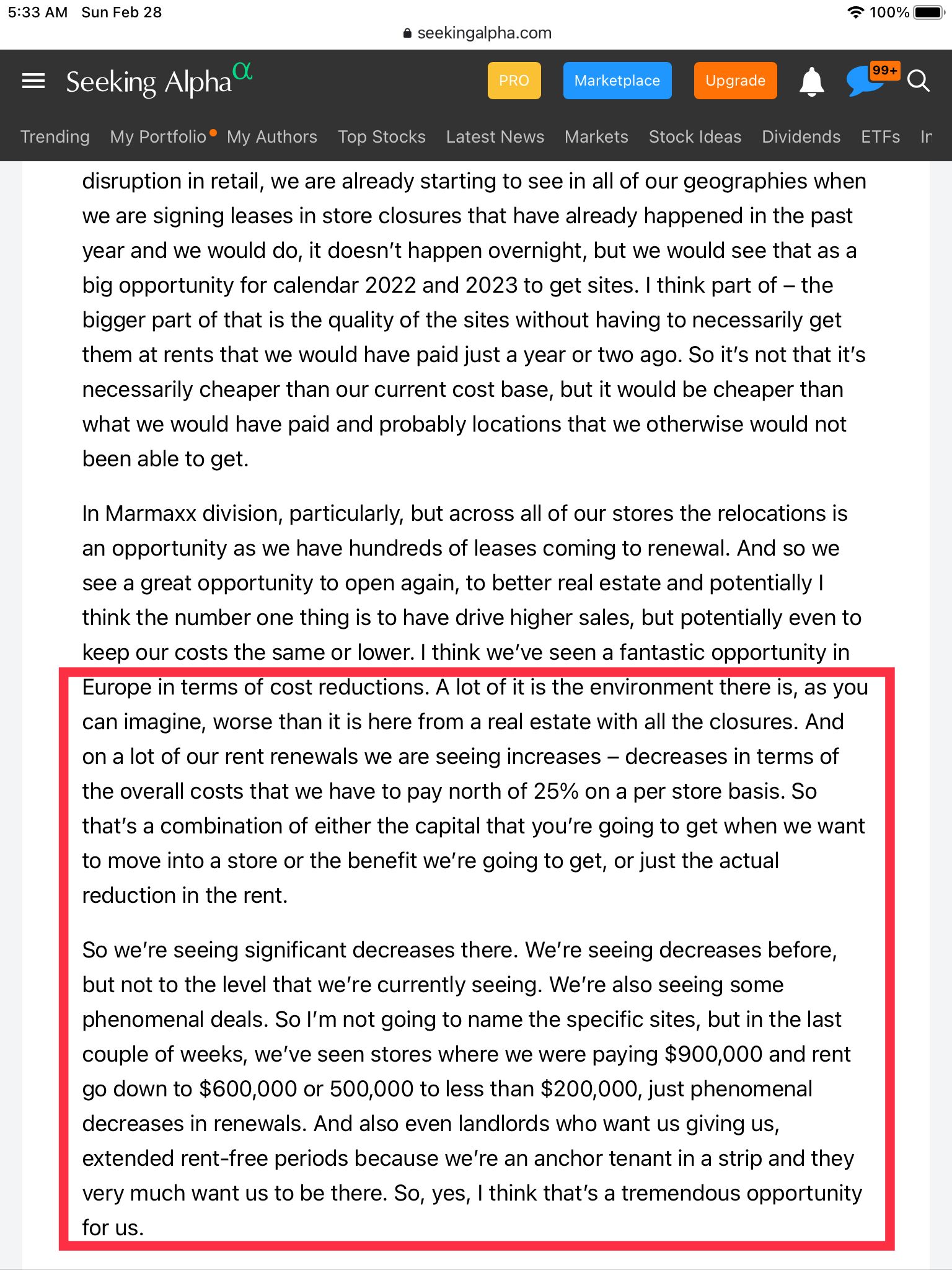 - more real estate opportunities at attractive rents. As expected, management noted that rents in some places are declining (particularly in Europe).