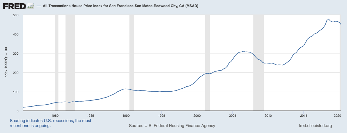 While California has a few challenges, it is home to the 3 of the 10 largest (Facebook, Google, Apple) companies in the world by market cap as well as Tesla, Netflix, Salesforce, Nvidia (to name a few). Seattle has two of them (Microsoft and Amazon). There is long term structural income growth in these markets which supports housing prices.