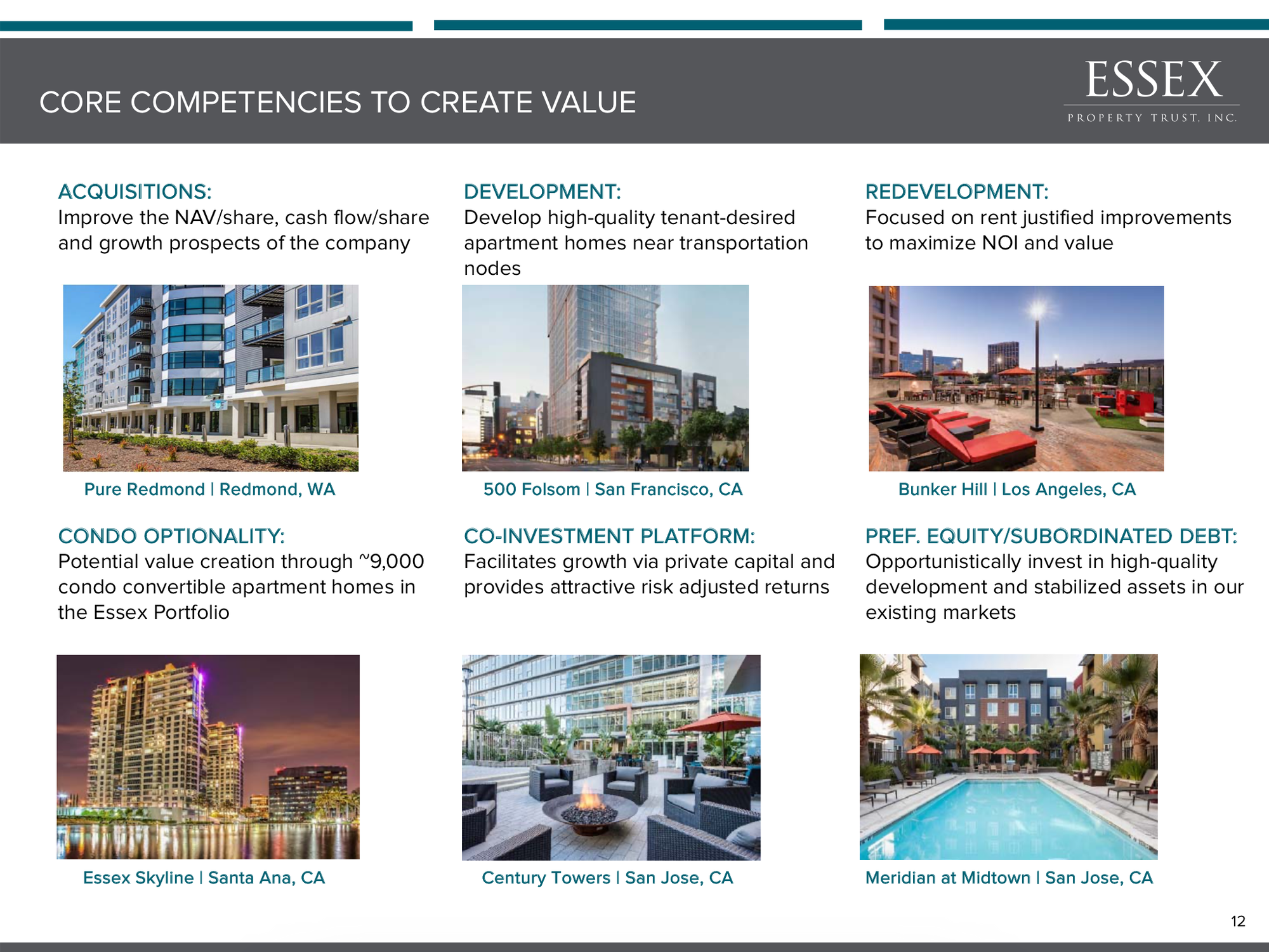 7) Clarity on property taxes (largest expense line for apartment REITs) due to California Prop 13 which limits property tax increases to 2% per year.